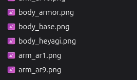 シナリオファイルと同様に, 画像素材についても Godot Editor 内での操作が必要がないよう, 特定のディレクトリに <character>/<layer>_<name>.png という規則で書き出しを行い, これをスクリプトから解決するような設計としています.