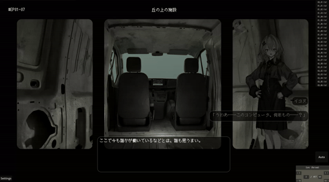 地の文は地なのでそのまま, 発言は漫画のフキダシのように発話者の近くをころころ移動するように変更しました. この段階で UI の方向性が概ね固まっています.