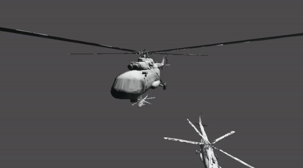 3D in 2D の表現が簡単にできそうだったので, 転がっていたヘリコプターのモデルをタイトル画面の背景で回したりガビガビさせたり.