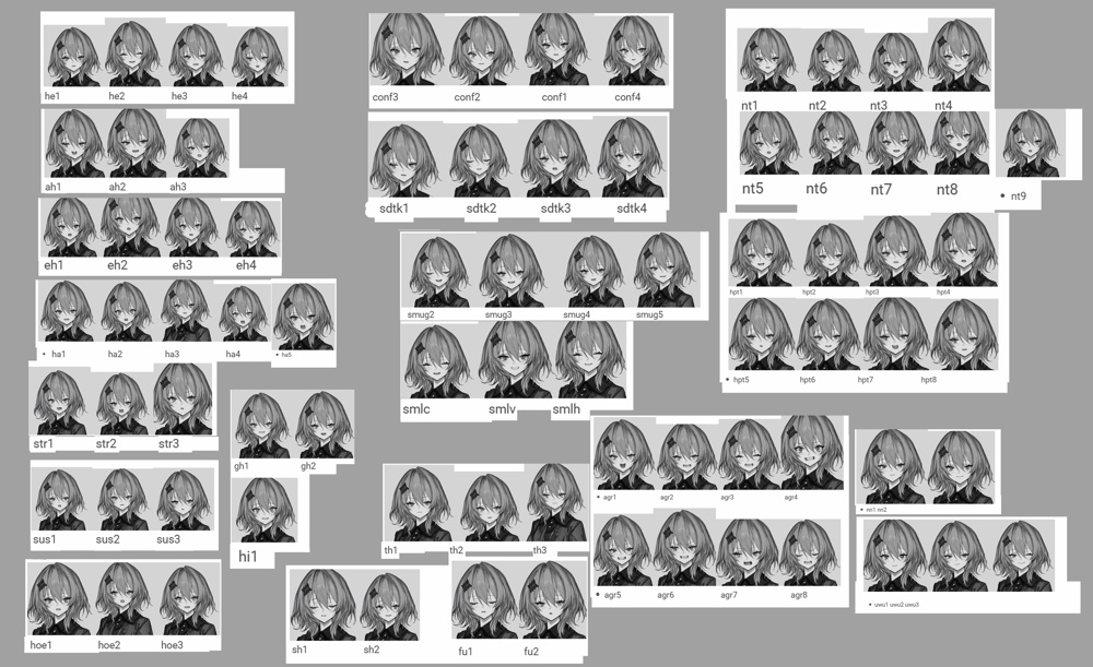 しかしメイン二人の表情差分は膨大で把握しきれず, 最終的にこのような画像が発生してスクリプトを書いていました.